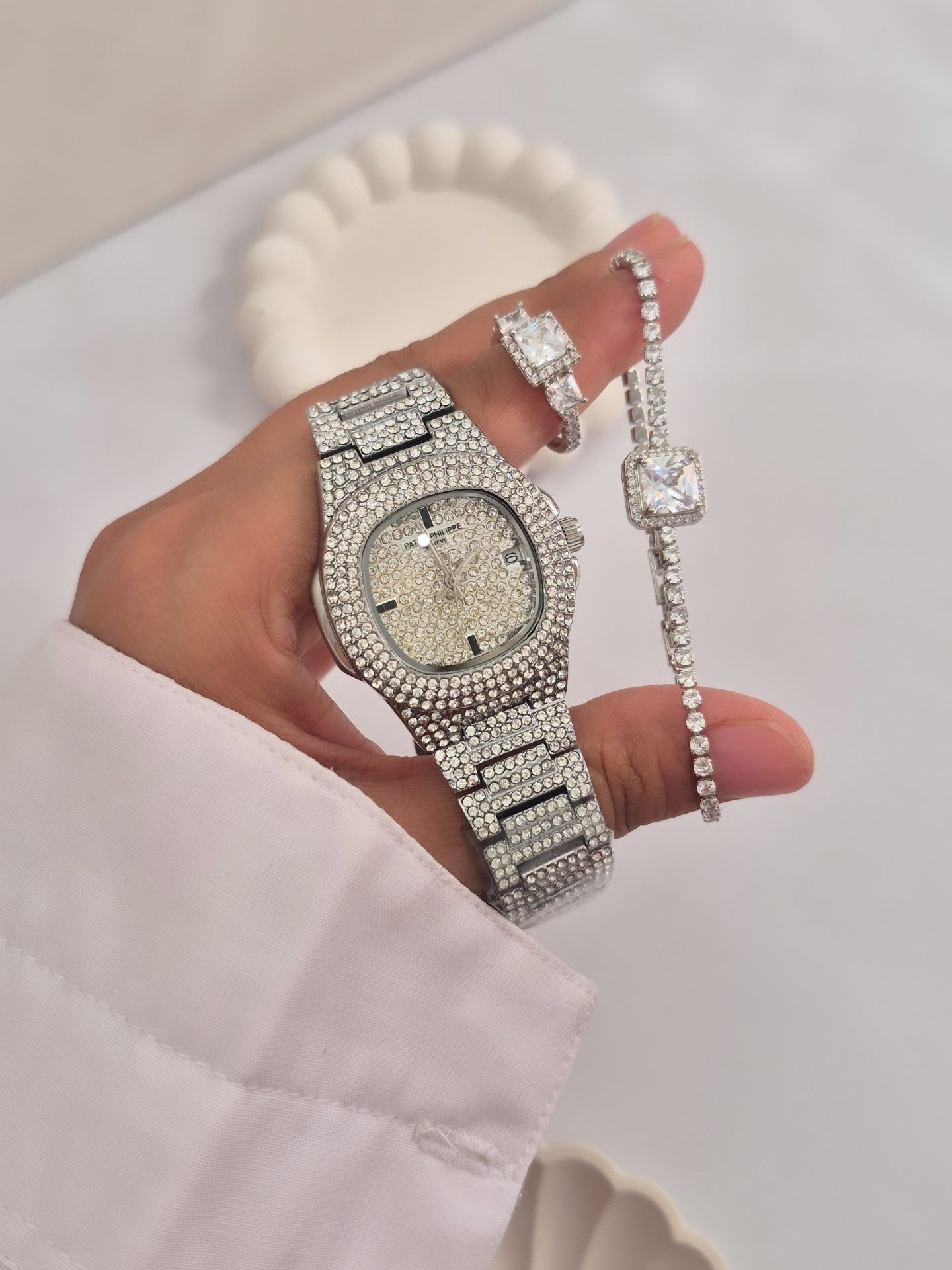 ساعت مچی فول نگین در دو رنگ طلایی و نقره ای برند پتک فیلیپ