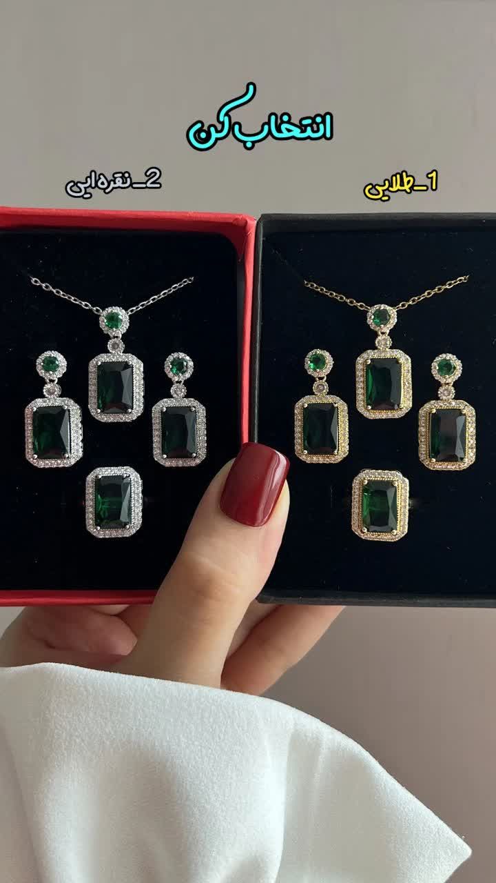 نیم ست زمردی دور نقره ای