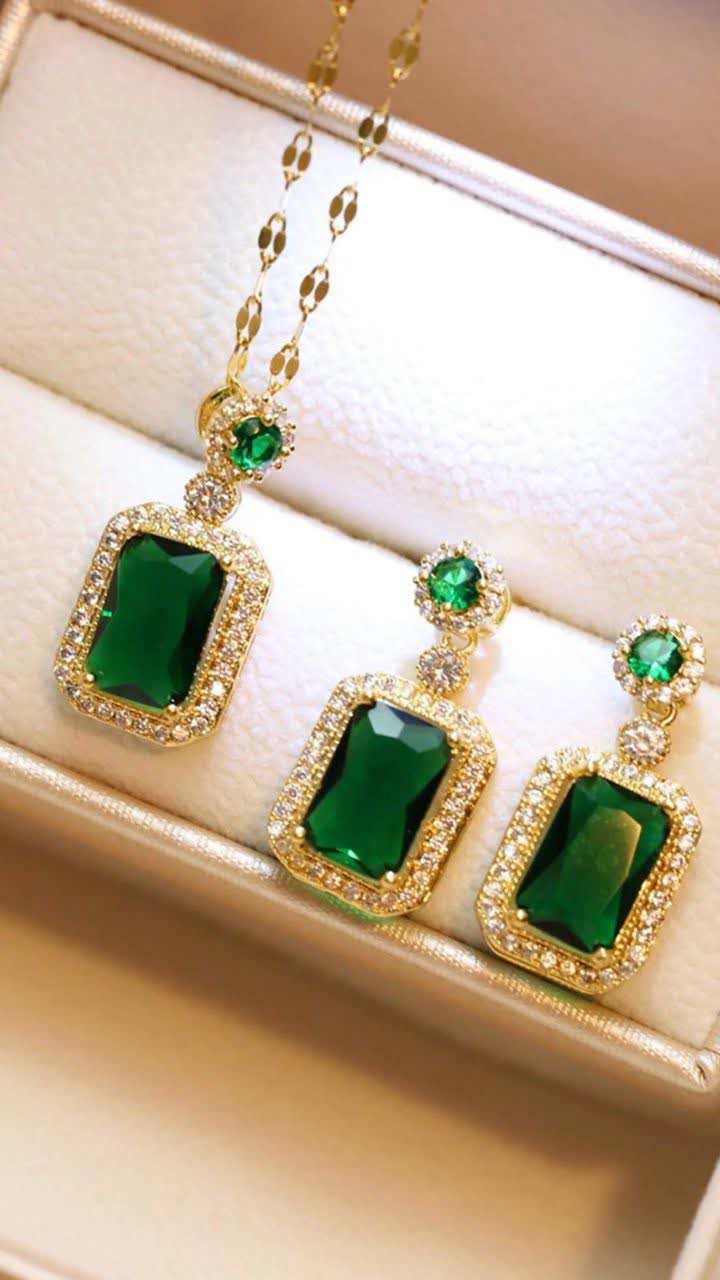 نیم ست زمردی استیل