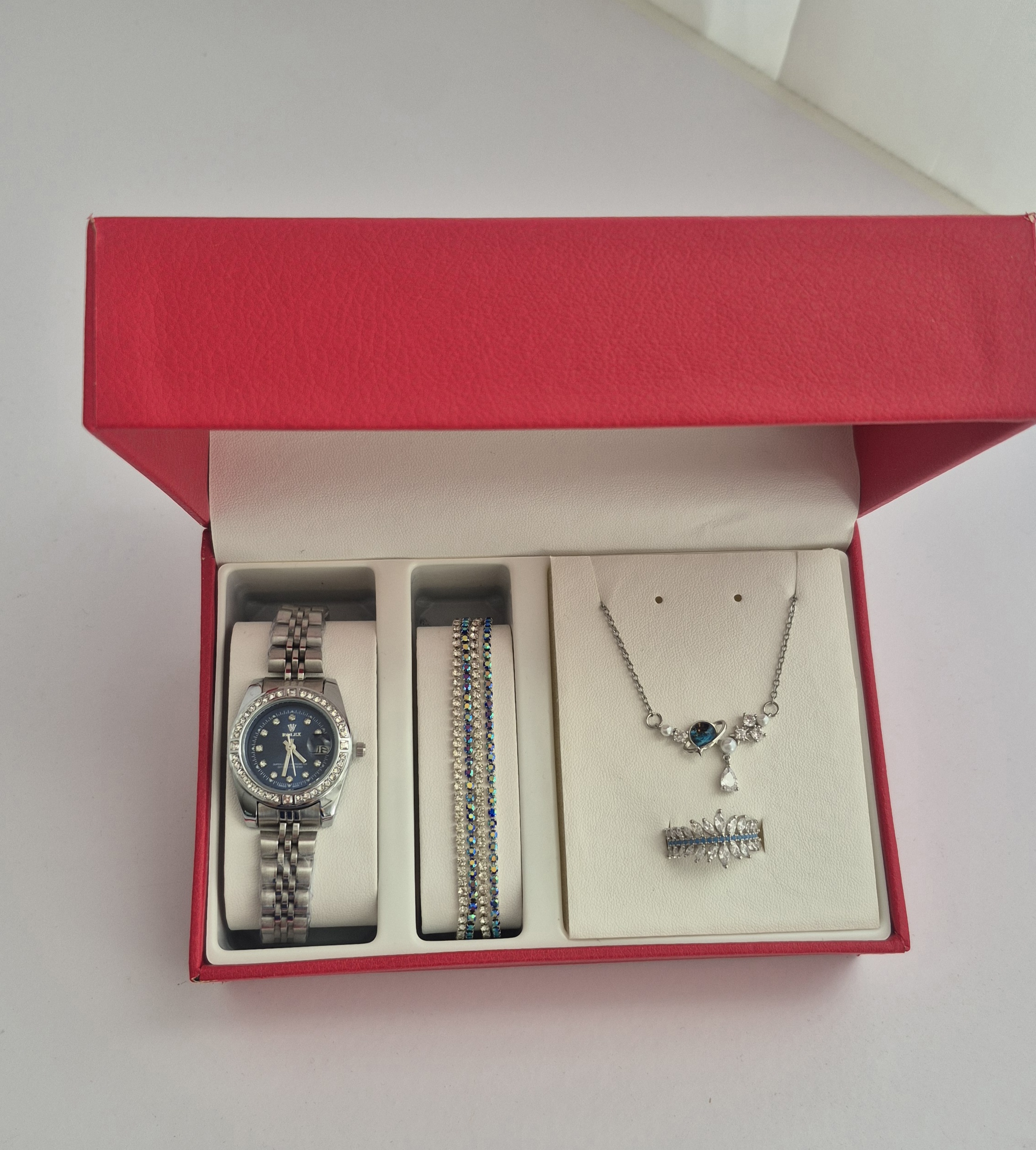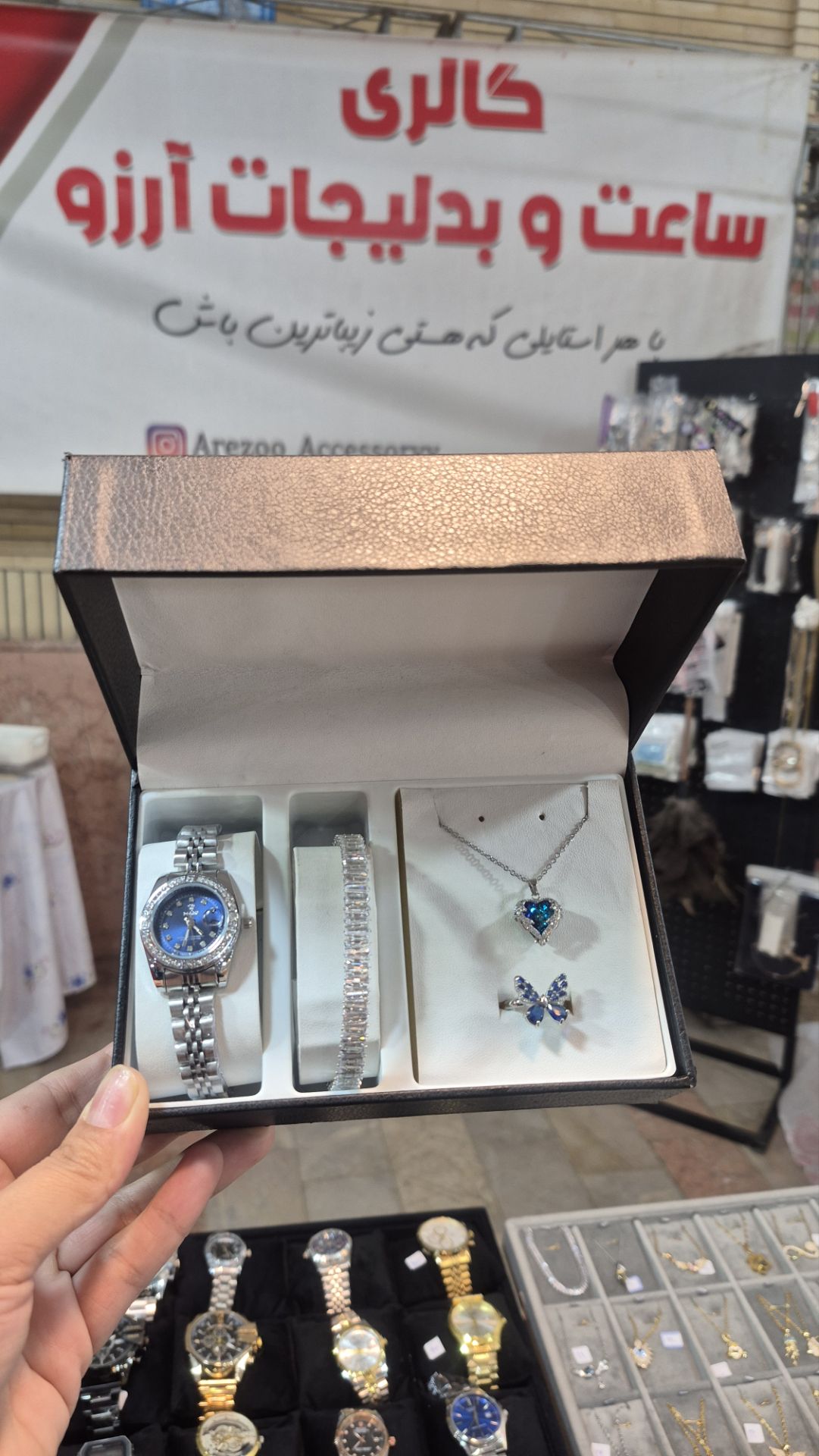 ساعت مچی زنانه بند استیل صفحه ابی دور نگین